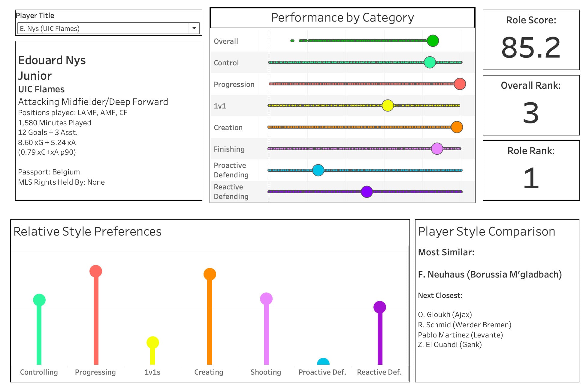 Nys was a standout for the UIC Flames; he won the Missouri Valley Player and Forward of the year, was a candidate for the Hermann Trophy (the nation's top player), and was the MVC's only representative at the MLS College Showcase this year.